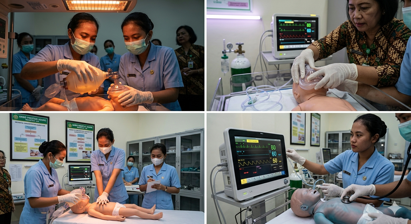 Kegagalan dalam transisi ini memerlukan intervensi cepat yang disebut dengan “Golden Minute” atau Menit Emas. Konsep ini menekankan bahwa langkah-langkah awal resusitasi, termasuk penilaian dan stimulasi, harus diselesaikan dalam waktu 60 detik pertama sejak bayi lahir. Pelatihan ini melatih insting para bidan agar tidak panik dan tetap mengikuti prosedur standar operasional (SOP) yang berlaku.